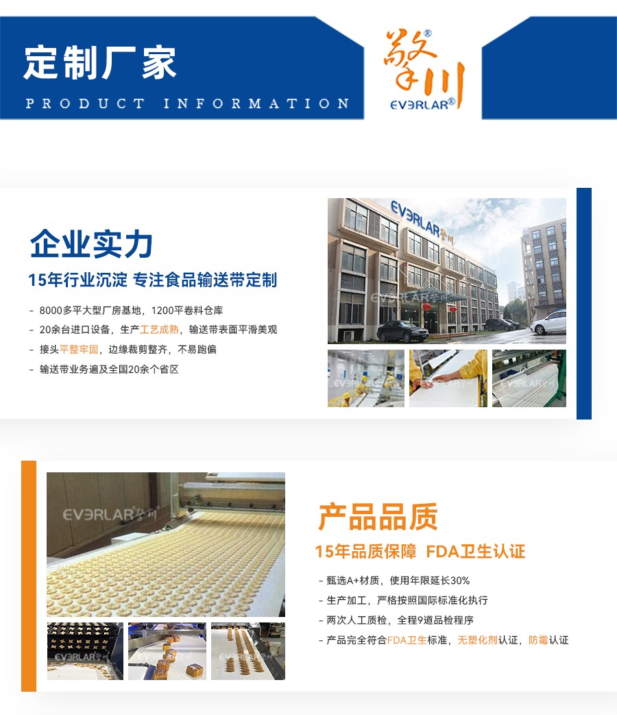本樣品根據(jù)客戶行業(yè)需求加工定做,以PU輸送帶為底帶,加工擋板分格物料,均勻傳輸,帶子均勻承重,增加使用壽命。表面兩邊設(shè)計(jì)加工雙導(dǎo)條,減少物料掉落概率,高度匹配客戶使用。