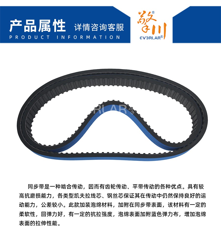 • 產(chǎn)品名稱:擎川everlar定制橡膠同步帶加藍(lán)色泡棉夾瓶機(jī)貼標(biāo)機(jī)傳動帶