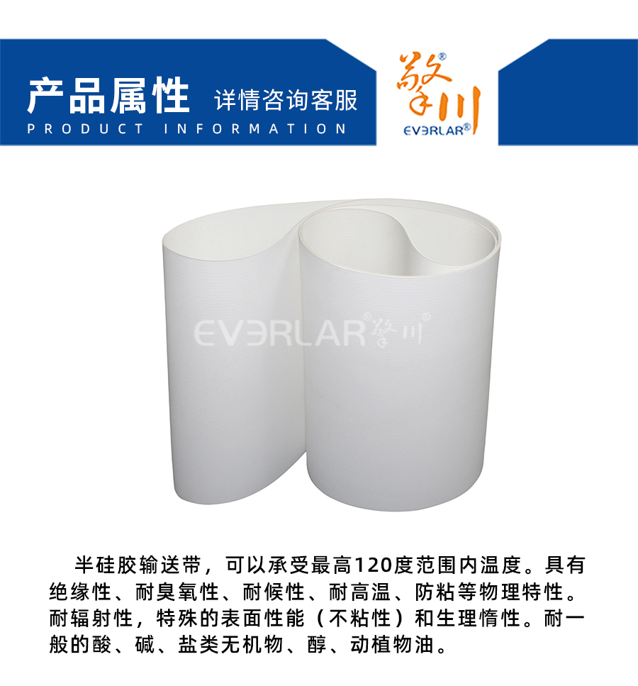 • 產(chǎn)品名稱:擎川everlar定制白色半硅膠輸送帶食品輸送帶