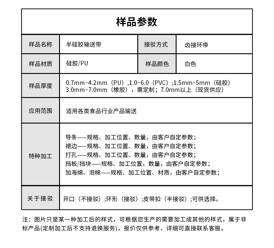 • 擎川everlar定制白色半硅膠輸送帶食品輸送帶