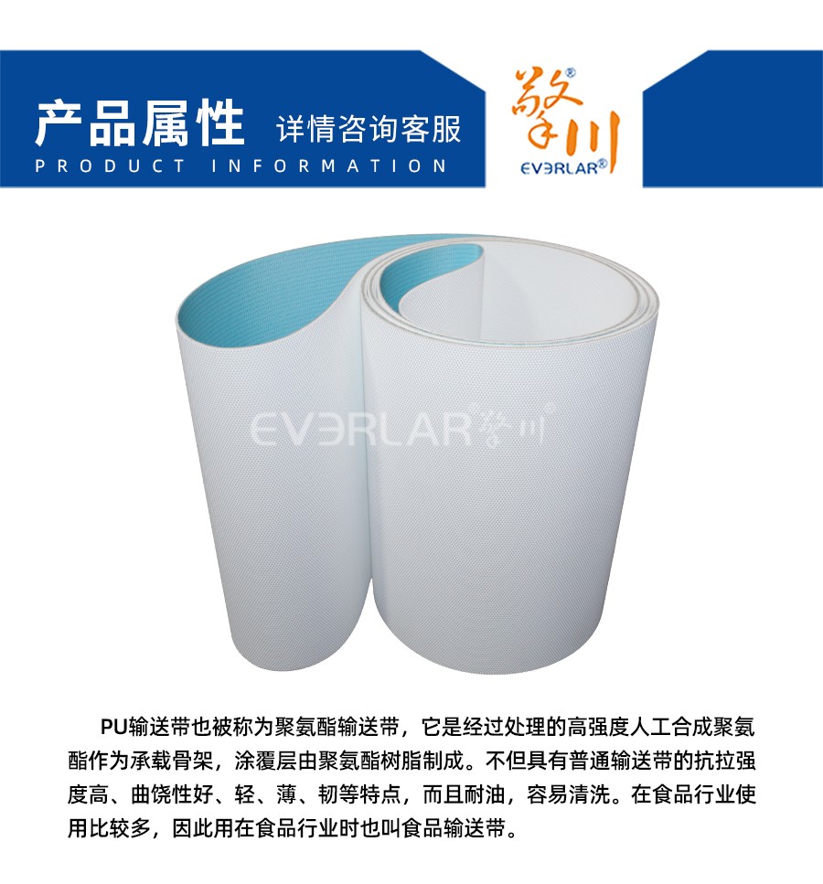 • 產(chǎn)品名稱:藍白色鉆紋PU輸送帶食品級輸送帶
