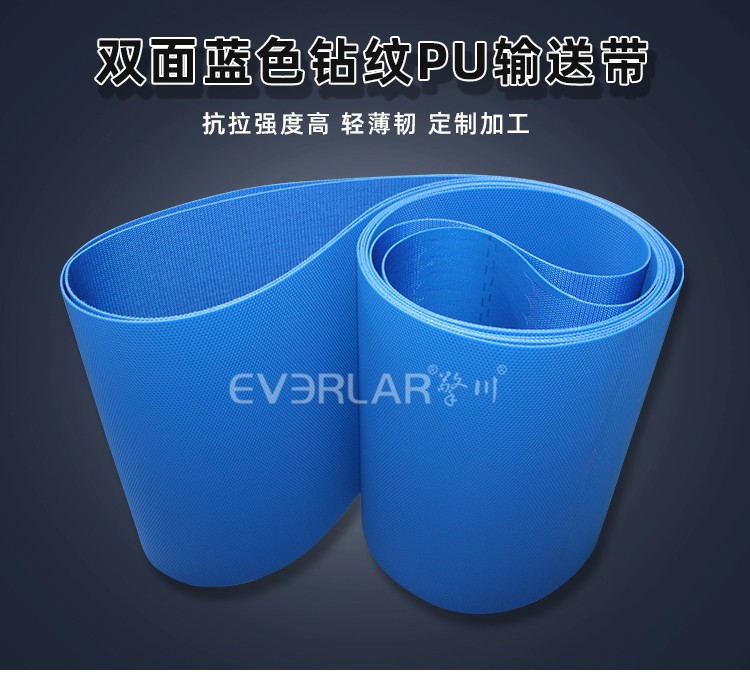 產(chǎn)品名稱:雙面藍(lán)色鉆紋PU輸送帶耐磨耐油食品級(jí)工業(yè)皮帶定制