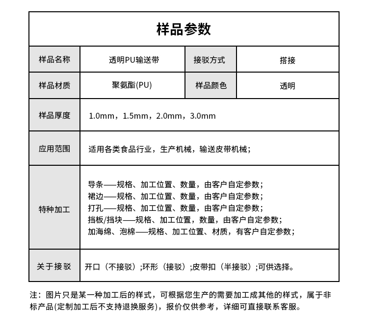 產(chǎn)品名稱:透明PU輸送帶耐磨易清潔耐腐蝕工業(yè)皮帶定制