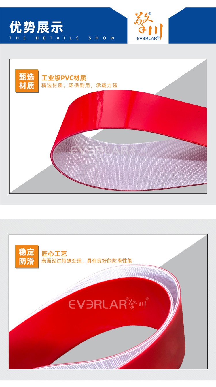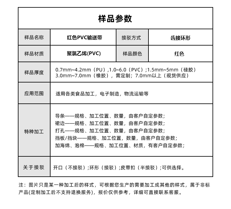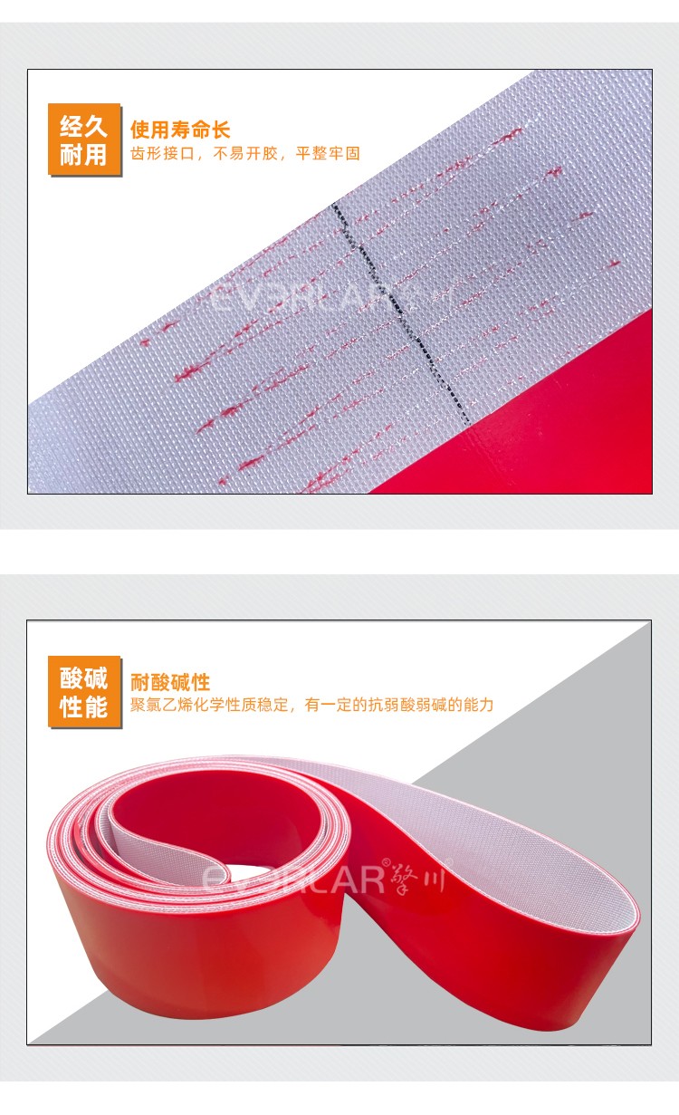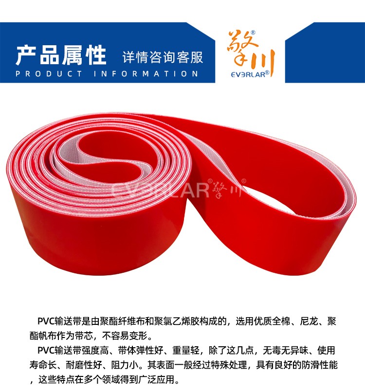 產(chǎn)品名稱:紅色PVC輸送帶耐磨耐腐蝕食品級工業(yè)皮帶定制