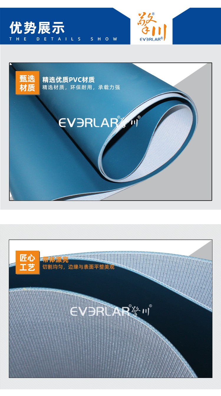 藍(lán)色PVC輸送帶加裙邊擋板導(dǎo)條耐磨耐油耐腐蝕工業(yè)皮帶定制