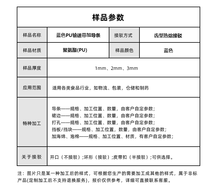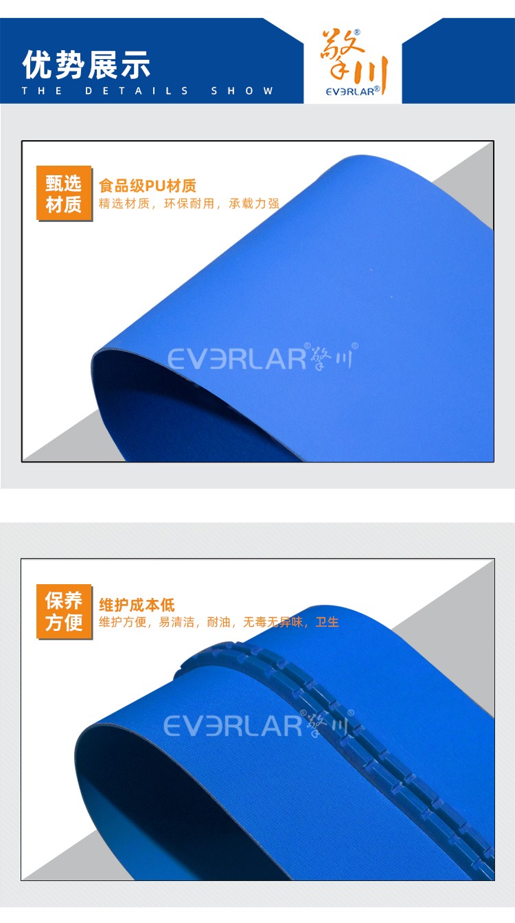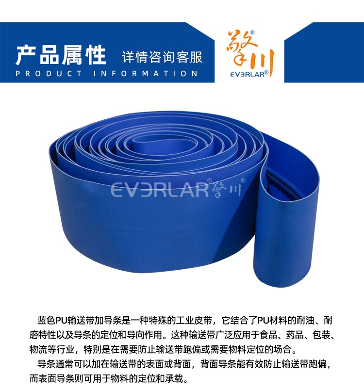 產(chǎn)品名稱:藍(lán)色PU輸送帶加導(dǎo)條耐磨耐油耐腐蝕工業(yè)皮帶定制