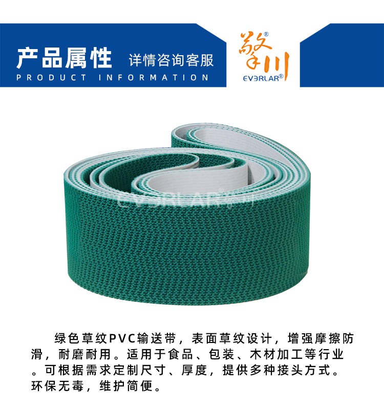 • 產品名稱:綠色草紋PVC輸送帶耐磨防滑耐腐蝕工業(yè)皮帶