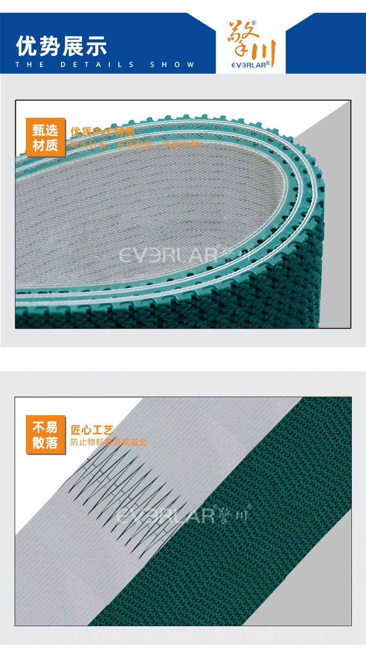 • 綠色草紋PVC輸送帶耐磨防滑耐腐蝕工業(yè)皮帶
