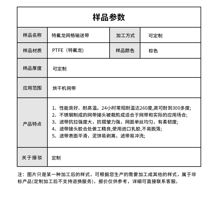 • 產(chǎn)品名稱:鐵氟龍網(wǎng)格輸送帶防火耐腐蝕耐高溫工業(yè)皮帶