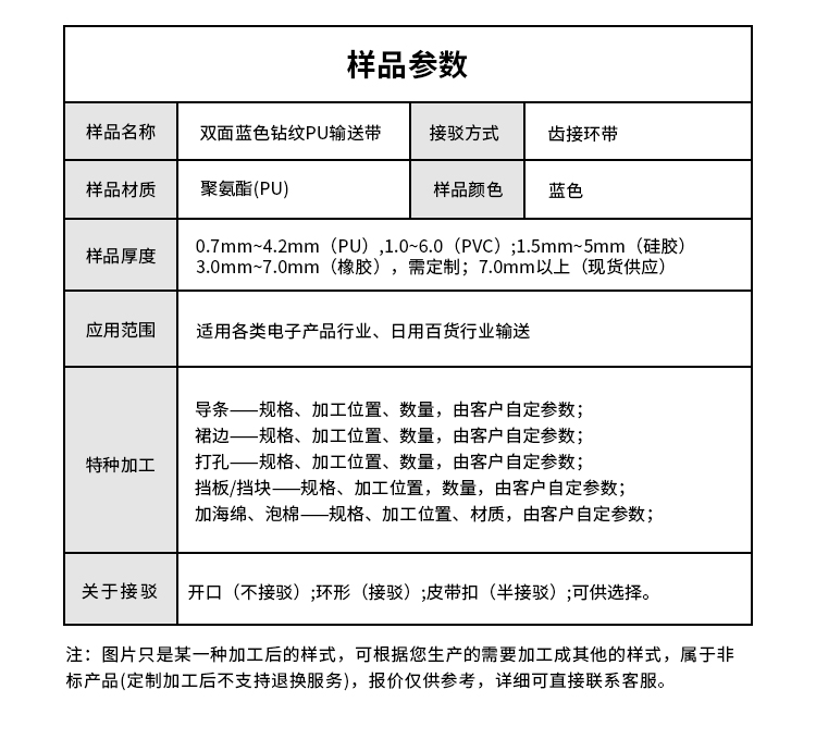 • 雙面藍色鉆紋PU輸送帶耐磨耐油耐腐蝕工業(yè)皮帶定制