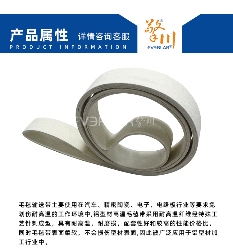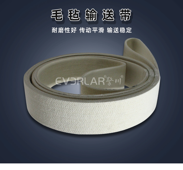 • 產(chǎn)品名稱:凱夫拉毛氈輸送帶耐磨耐高溫耐腐蝕工業(yè)皮帶定制