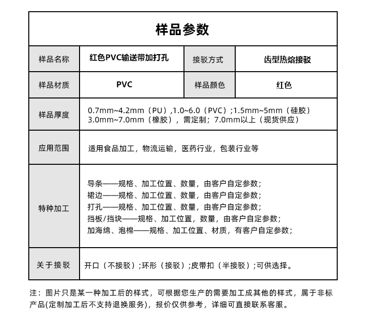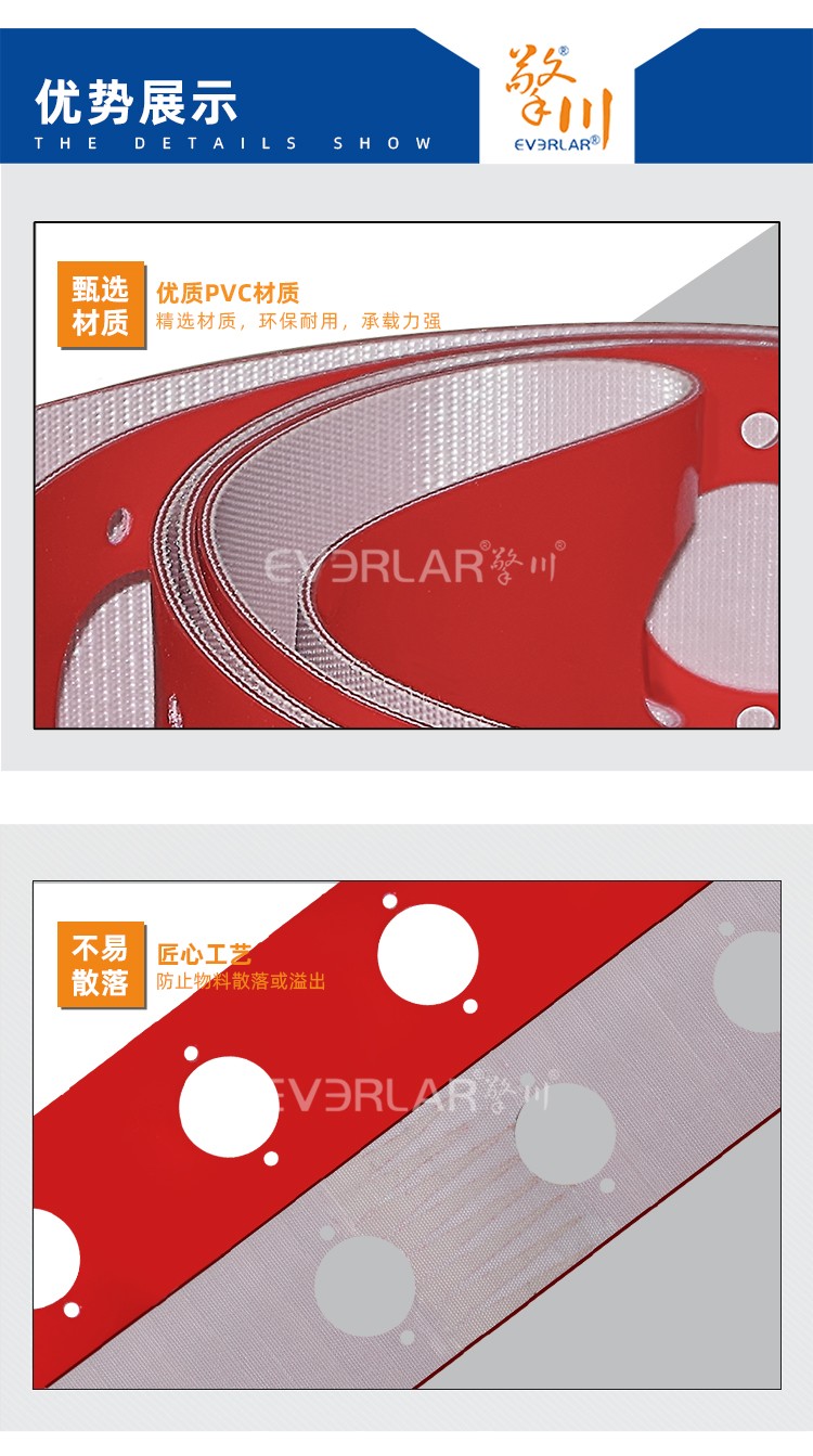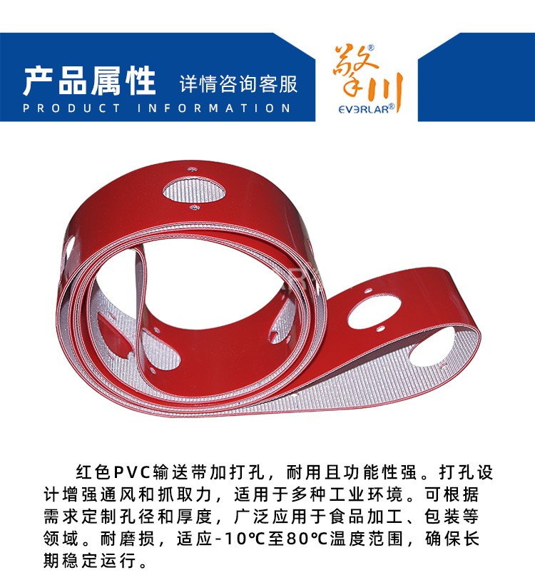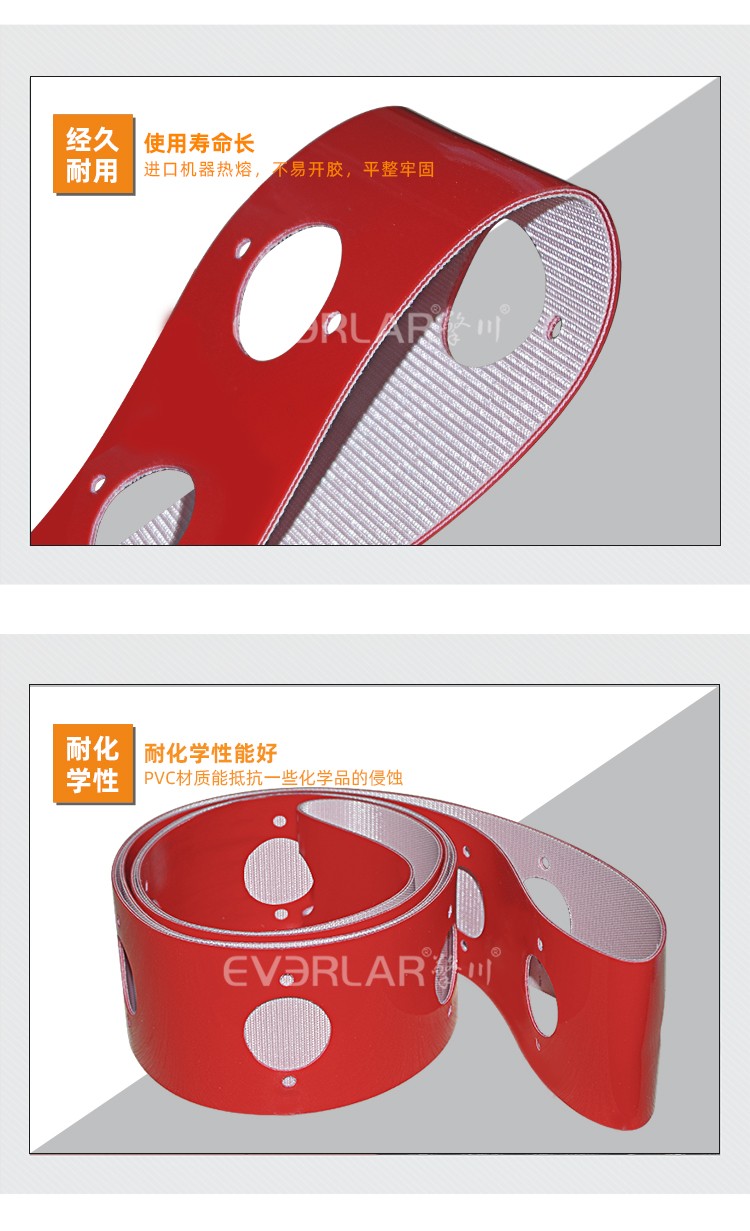 • 產(chǎn)品名稱:紅色pvc輸送帶加打孔耐磨降噪防靜電工業(yè)皮帶