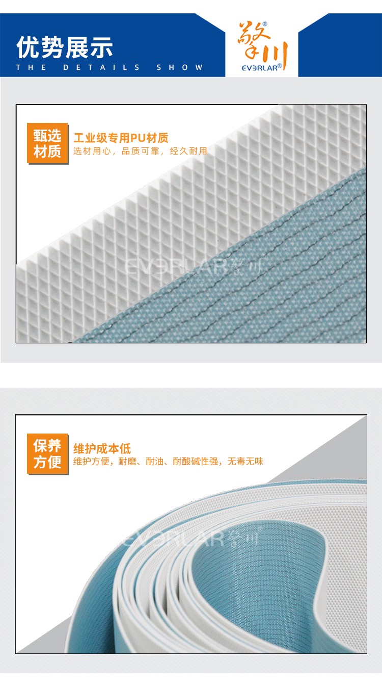 • 產(chǎn)品名稱:PU藍白鉆紋輸送帶耐磨耐油耐腐蝕工業(yè)皮帶定制