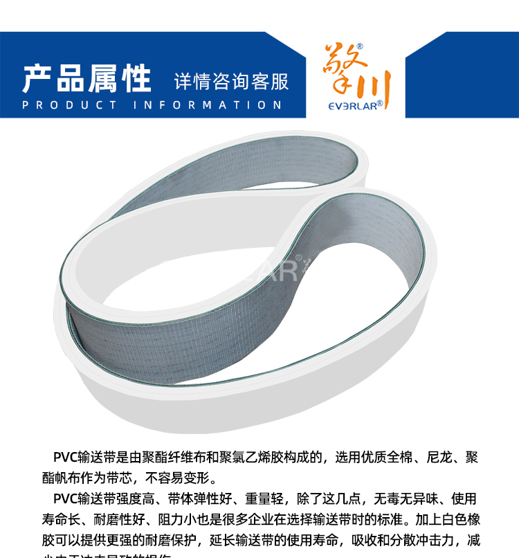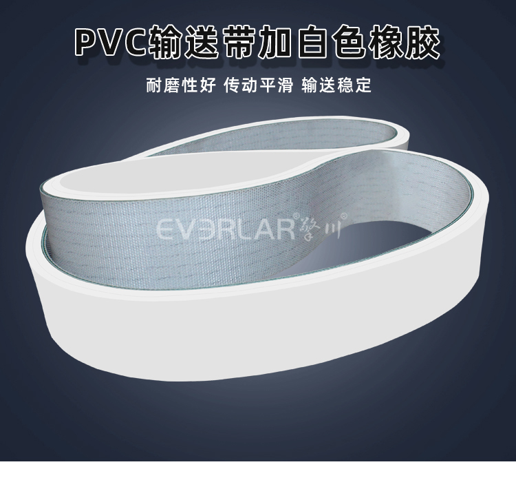 • 產(chǎn)品名稱:PVC輸送帶加白色橡膠耐磨耐腐蝕耐低溫工業(yè)皮帶定制