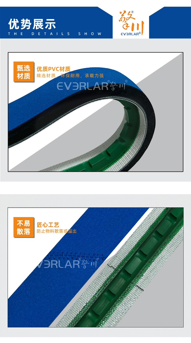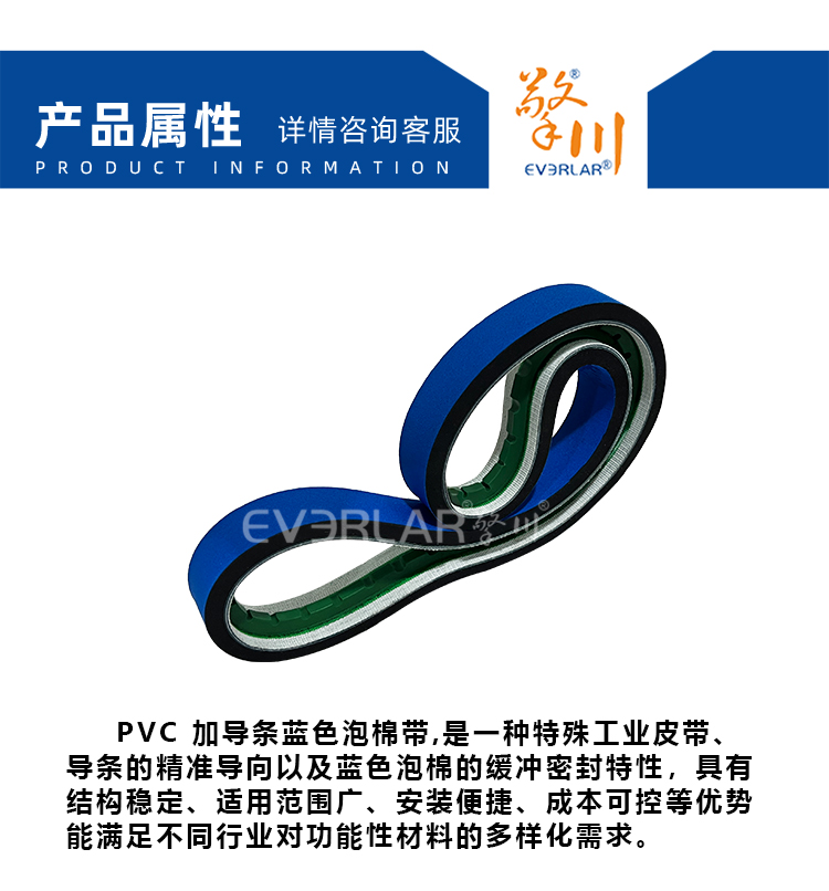 • 產(chǎn)品名稱:PVC藍布泡棉導(dǎo)條輸送帶耐磨緩沖包裝物流包裝機輸送線皮帶
