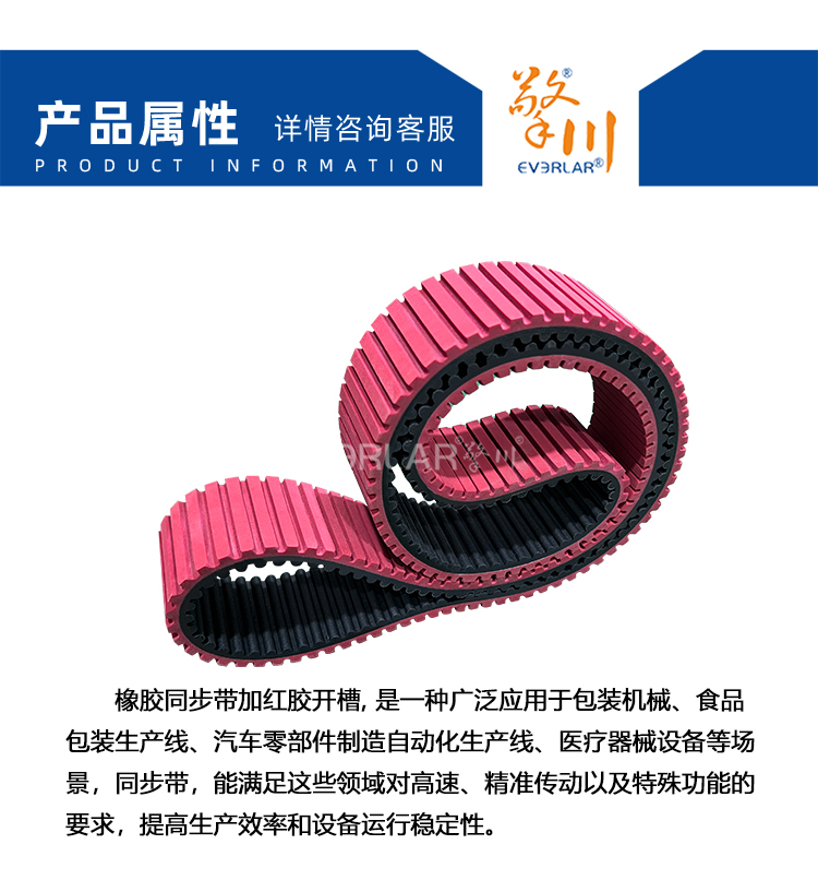 產(chǎn)品名稱:橡膠同步帶加紅膠開槽耐磨防滑汽車零部件自動化生產(chǎn)線傳動帶