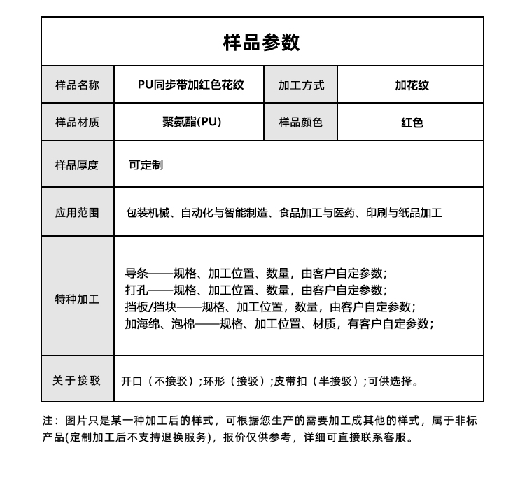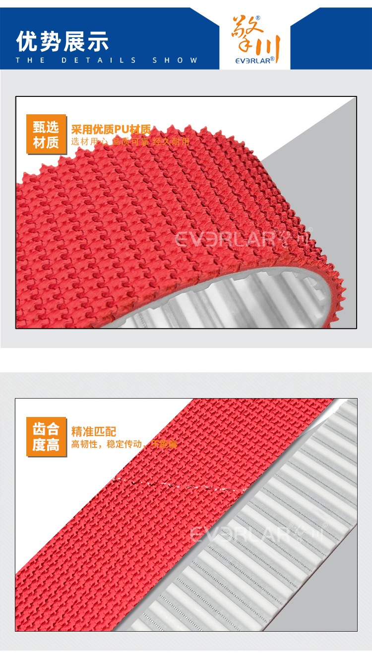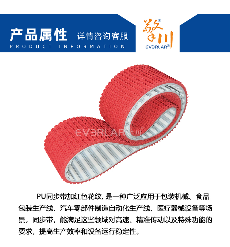 產(chǎn)品名稱:PU同步帶加紅色花紋食品包裝自動(dòng)化生產(chǎn)線聚氨酯工業(yè)皮帶