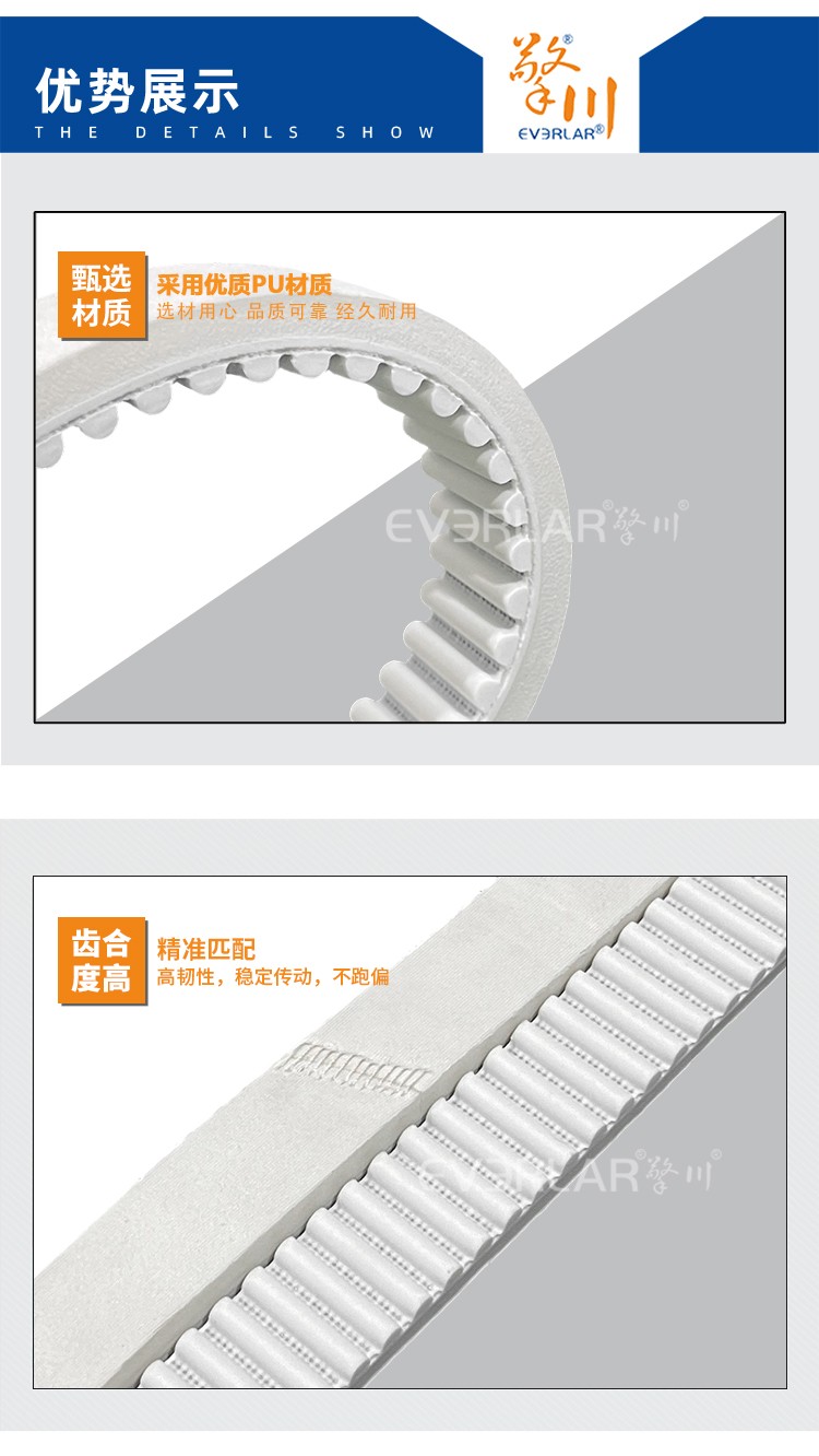 產(chǎn)品名稱:PU同步帶加白布泡棉耐磨減震包裝機(jī)分揀流水線工業(yè)皮帶定制