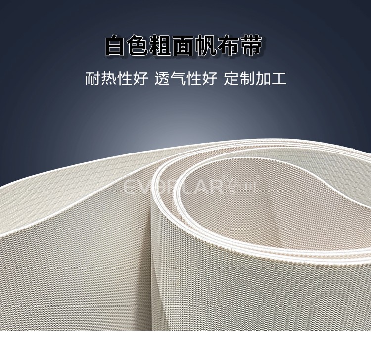 產(chǎn)品名稱:白色粗面帆布帶糧食加工貝果輸送帶耐高溫傳送帶廠家定制