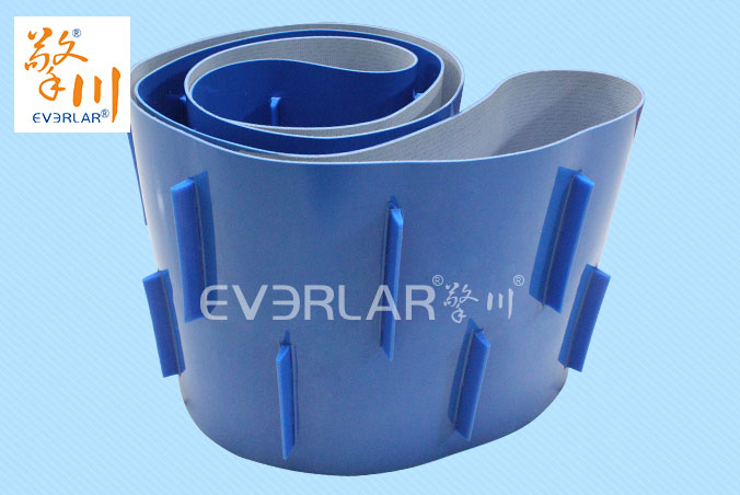 為食品、醫(yī)藥、包裝、日化提供一站式特殊定制PU輸送帶:藍色PU輸送帶加擋塊的關鍵作用